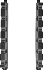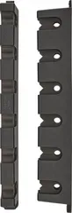 Befestige den Halter an Holz, Metall, Fiberglas, Kunststoff oder Rigips mit den mitgelieferten Schrauben (bei Gipskarton geeignete Wandanker verwenden). Die ineinandergreifenden Verankerungspunkte im Abstand von 16" (ca. 41 cm) ermöglichen die Erweiterung Deines Systems durch Verbindung mehrerer Halter.