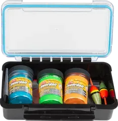 Das Berkley PowerBait Trout Starter Kit enthält PowerBait-Teig, fertig gebundene Haken, Schwimmer, Hakenlöser und Zubehör in einer praktischen Aufbewahrungsbox. Ein komplettes, sofort einsatzbereites Set für das Forellenangeln in Teichen und besetzten Gewässern.