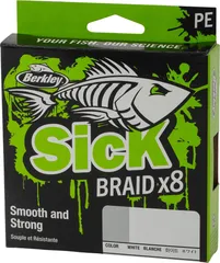 Die Berkley Sick Braid ist eine 8-fach geflochtene PE (Polyethylen)-Schnur für Angler, die beim Raubfischangeln im Süßwasser maximalen Kontakt zum Köder und sofortige Bisserkennung fordern.