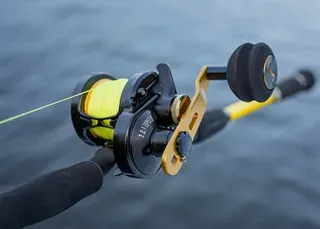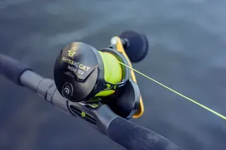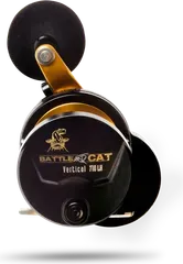 Die Black Cat Battle Cat Vertical 710 LH ist eine leichte 390 g Linkshand-Baitcastingrolle mit 15 kg Bremskraft, 7.2:1 Übersetzung und 102 cm Einzug für vertikales Welsangeln vom Boot.