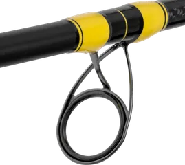 Der lasergravierte EVA-Griff bietet mit seinem X-Wrap-Finish am Vordergriff sicheren Halt auch bei nassen Händen. Der abgeflachte Hintergriff liegt beim Andrücken ans Unterarm bequem auf und überträgt Kraft direkt. Das verkürzte Griffdesign minimiert störende Hebel und hält die Rute direkt über dem Hotspot manövrierbar. Acht hochfeste Seaguide-Ringe aus rostfreiem Stahl und ein Fuji DPSM Rollenhalter sorgen für dauerhafte Zuverlässigkeit.