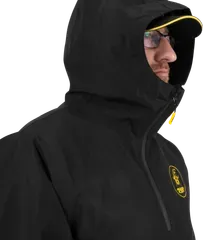 Der Black Cat Waterproof Smock in Größe L kombiniert 8000 mm Wassersäule mit 3000 g/m²/24h Atmungsaktivität im praktischen Überzieher-Design. Perfekt für Wallerangler bei Nässe.