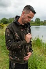 Das AOP (All-Over-Print) Fox-Camo-Muster lässt dich am Ufer mit der Umgebung verschmelzen, während das 310 g/m²-Material substantielle Wärme ohne unnötiges Volumen bietet. Die mit Mikrofleece gefütterte Kapuze mit verstellbaren Kordelzügen schützt zusätzlich, wenn das Wetter umschlägt.