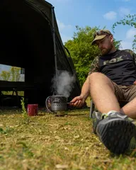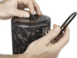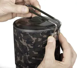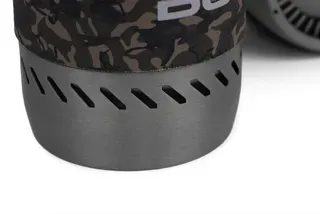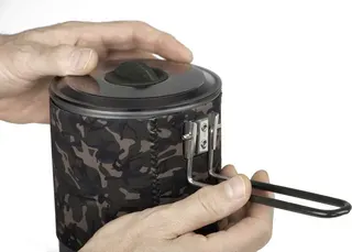 Die Konstruktion aus hart eloxiertem Aluminium verfügt über einen speziell entwickelten Wärmetauscher-Boden, der die Hitze des Fox Infrared Stove mit maximaler Effizienz kanalisiert. Dieses Design reduziert Kochzeiten und Brennstoffkosten, sodass du weniger Zeit mit Warten und mehr Zeit mit Angeln verbringst. Die Fox Camo Neoprenhülle kann während des Gebrauchs aufgezogen bleiben und bietet zusätzliche Isolierung, um die Wärme noch länger zu halten.