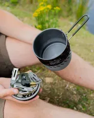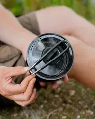Das 1,25-l-Fassungsvermögen ist so konzipiert, dass du dein Kochzubehör im Topf selbst unterbringen kannst. Verstaue den Fox Infrared Stove zusammen mit einer 230-g-Gaskartusche oder alternativ eine große 500-g-Kartusche für längere Sessions – alles im Topf für kompakten, organisierten Transport. Der umklappbare Griff sichert den Deckel während des Transports und verhindert Verschütten.