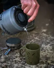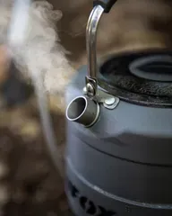 Gefertigt aus hart eloxiertem Aluminium mit sicherem Triton-Deckel hält dieser Wasserkocher den Anforderungen des regelmäßigen Einsatzes stand. Der umklappbare Griff lässt sich platzsparend verstauen — ideal für mobile Angler und Übernachtungssessions.