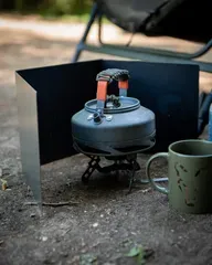 Dieser kompakte dreiteilige Windschutz schützt deinen Kocher vor Wind und Wetter und sorgt für kürzere Kochzeiten und geringeren Gasverbrauch während deiner Sessions.