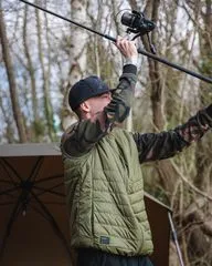 Das Fox Olive Quilted 100 Gilet bietet essenzielle Isolierung ohne Volumen und hält den Rumpf bei kühleren Sessions warm, während die Arme frei bleiben für Würfe und den Drill.