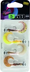 Das Fox Rage Micro Grub Tail Mixed UV Colour Pack liefert vier fertig montierte 4 cm Finesse-Köder in UV-reaktiven Farben, sofort einsatzbereit. Auf 3 g Jigköpfen mit Größe-4-Haken montiert, zielt dieses vielseitige Set auf Barsch, Zander und Forelle mit bewährter Grub-Tail-Action.