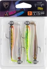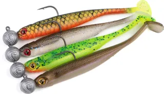 Mini Tiddler Mixed Colour Pack Loaded 4pcs NP WS EF LT — 8 cm / 5 g, vormont. auf 5-g-Jigkopf Gr. 1/0, Farben: UV Natural Perch, UV Wakasagi, UV Electric Flash, UV Lemon Tiger — sofort fischbares Mehrfarben-Set, ideal für Barsch, Zander und Hecht im Süßwasser; deckt klares und trübes Wasser ab