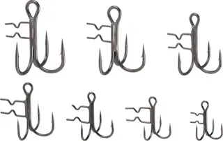 Messerscharfe Drillinge Größe 1/0 mit integrierten Köderpins, die Gummiköder fixieren und alle drei Spitzen frei halten. Ideal für pelagische Angelei und Stinger-Montagen. 4 Stück.
