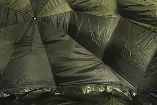 Ein spezieller 16 mm Aluminiumrahmen integriert sich vorne und hinten mit den Sturmstangen-Befestigungspunkten des Brollys und verteilt die Last gleichmäßig über die gesamte erweiterte Struktur. Einzigartige Befestigungen verriegeln den Rahmen mit den Sturmstangen und sorgen dafür, dass das gesamte Shelter auch unter anspruchsvollen Bedingungen stabil bleibt.