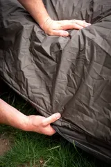 Mit einer Wassersäule von 20.000 mm schützt das Ven-Tec-Material zuverlässig vor Regen und Kondenswasser und bleibt dabei atmungsaktiv. Die khakigrüne Außenschicht trotzt allen Witterungsbedingungen und hält dich trocken, egal wie hart das Wetter zuschlägt. Klettverschluss-Seitenstreifen fixieren die Abdeckung sicher, und eine Kordelzugverstellung dichtet oben gegen Zugluft ab.