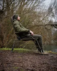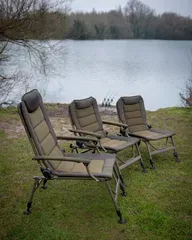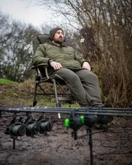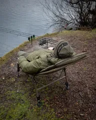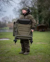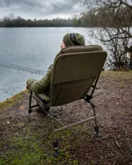 Der Fox Voyager Large Recliner Chair bietet außergewöhnlichen Komfort für lange Karpfenansitze mit 70 cm Breite, 84 cm Länge, Polyester-Außenhülle und warmem Microfleece-Futter.