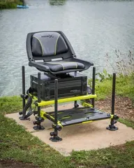 Die Matrix F25 Pro Sitzkiepe Lime Edition ist eine 13,5 kg leichte Alu-Sitzkiepe mit Drehelement für rückenschonendes Feederangeln, H-Rahmen, ausziehbaren Füßen und tiefen Schubladen für strukturierte Sessions am Süßwasser.