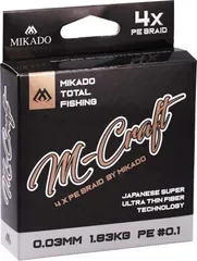 Mikado M-Craft Braid 0,06 mm in Steel Grey ist eine ultradünne 4-fach PE-Geflochtene für Finesse-Spinnfischen. Mit 3,83 kg und 150 m sensibel, unauffällig und ideal für Barsch, Döbel und Forelle mit Kleinködern.
