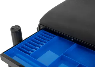 Das modulare System lässt dich Einheiten nach Bedarf hinzufügen oder entfernen, ganz nach deinem Angelstil. Tiefe und flache Trennelemente sorgen für durchdachte Organisation deiner Kleinteile und Futterkörbe. Der gepolsterte Deluxe-Schultergurt macht den Transport zum Gewässer angenehm.