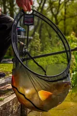 Carbon Hair Mesh Landing Net 40,6 cm (16") — kompakter Reifen ideal für Weißfische, F1-Karpfen, kleine Karpfen und Forellenteiche, wo der Platz auf der Plattform begrenzt ist