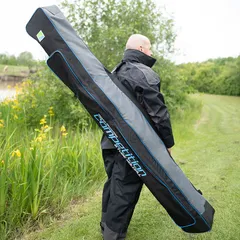 Bietet Platz für bis zu 6 Vollruten oder Kopfruten, gesichert durch verstellbare innere Klettbänder. Eine Außentasche bietet zusätzlichen Platz für Zubehör wie Regenschirme, Unterfangkescher oder Banksticks.