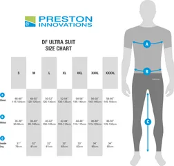 Der Preston Df Ultra Suit ist in Größen von Small (S) bis 4XL und größer erhältlich. Beachte die Größentabelle auf der Produktseite, um deine richtige Größe zu finden. Ein gut sitzender Anzug gewährleistet maximale Bewegungsfreiheit und Komfort beim Werfen, Anschlag und Landen.