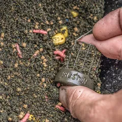 Der Preston Distance Cage Feeder wurde speziell für das Angeln auf große Distanz entwickelt. Das Blei ist an der Unterseite montiert, was die Wurfgenauigkeit bei Seitenwind deutlich verbessert.