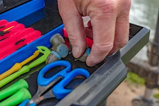 Ideal für Montagen, Wickler, Futterkörbchen, Boilie Mischungen, Method Pack Köder und anderes Kleinzubehör. Halte schwerere Gegenstände unten für Stabilität während des Einsatzes.