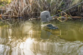 Die Löcher im Boden ermöglichen eine gleichmäßige und sanfte Futterabgabe unter Wasser, was zu einer konsistenten Futterwolke um deine Futterstelle führt. Dies minimiert Verschwendung und macht Anfütterung natürlicher und fischgerechter.