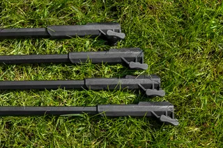 Die 60cm langen Beinverlängerungen gleichen problemlos Abschüssigkeit, Kiesstrände und variable Bodenunebenheiten aus. Jedes Bein befestigt sich per Handrad—keine Werkzeuge nötig. Bei Bedarf stapelst du mehrere Sets und kommst so über große Höhenunterschiede weg.