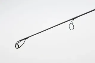 Gefertigt aus hochmoduligem 24T-Carbon, wiegt der Blank nur 328g und bleibt dabei extrem reaktionsfreudig. Satinschwarze 50mm-MM-Series-Startringe senken das Gesamtgewicht um bis zu 30% gegenüber Standard-SIC-Ringen, während der große verwicklungsfreie 16mm-Spitzenring Abrisse verhindert und beim Angeln an krautigen Gewässern hilft, Kraut von der Schnur zu lösen.