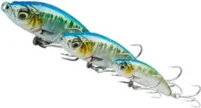 Farbvarianten umfassen natürliche Beutefischmuster (Mirror Ayu, Sardine, Ghost Sardine), auffällige Reizfarben (Last Flash, Blue Green) und fotorealistische Prints (Sayoris PHP, Pink Barracuda PHP). Leucht-Varianten (Crystal White GLOW) glänzen bei wenig Licht und trübem Wasser.