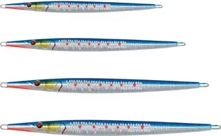 Der Savage Gear UV Needle Jig 21cm 100g Sardine ist ein schlanker Metallköder mit enormer Wurfweite und unregelmäßiger Sinkaktion. Eingebaute Stahlrassel und realistisches Hornhecht-Profil locken Thunfisch, Bonito und andere Räuber an.
