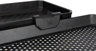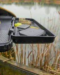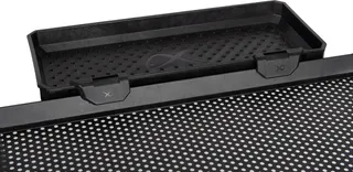 Der Extender wird auf den äußeren Rand deines Matrix Side Trays aufgeschoben und bietet dir eine separate Zone für Hakenvorfach-Boxen, Köderdosen oder kleine Zubehörteile, ohne wertvollen Platz auf der Hauptablage zu belegen. Kein Werkzeug, kein Aufwand – einfach aufstecken und losangeln.