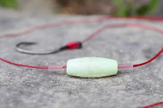 Montage: am Vorfach ca. 10 cm über dem Köder fixiert