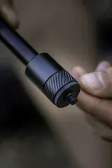 Der Adapter passt auf alle Fox Black Label QR Banksticks, rastet schnell ein und hält fest. Die schwarz eloxierte Oberfläche widersteht Korrosion und fügt sich unauffällig in dein Setup ein, während die leichte Aluminiumkonstruktion nur minimal Gewicht zu deiner Ausrüstung hinzufügt.