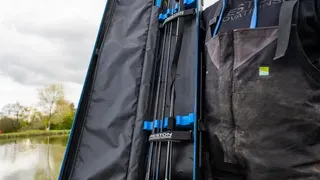 Eine Hälfte verfügt über interne EVA-Trennwände und einen tiefen Rollenstauraum für bis zu vier Ruten komplett mit Rollen. Die andere Hälfte nimmt bis zu drei Stipprutenteile auf oder nutze sie für Kescher-Griffe, Distance Sticks und Ersatz-Spitzen, wenn du die Rod Safe als reine Rutentasche konfigurierst.