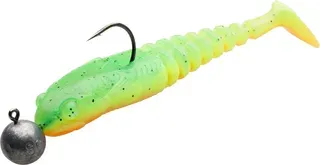 Dieser flache Gummifisch imitiert eine Grundel und erzeugt mit seinem kräftigen Schaufelschwanz massive Turbulenzen im Wasser. Die Farbe Smelt liefert natürliche Beutefisch-Optik für Barsch, Zander, Hecht und andere Räuber im Süßwasser.