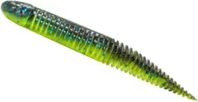 Montiere den Ned Dragon Tail Slug auf einem Ned-Jigkopf für die klassische senkrechte Präsentation oder ziehe ihn auf einen EWG-Haken für eine krautfreie Montage, die durch Hindernisse gleitet. Der gerippte Körper hält Haken sicher und erzeugt bei jeder Zupfbewegung lebensechte Action.