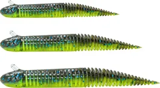 8,8 cm / 4 g — Allround-Größe für Barsch und Forellenbarsch unter den meisten Bedingungen; funktioniert gut mit 3–5 g Ned-Köpfen oder leichten Cheburashka-Montagen