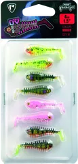 Packungsinhalt: 8 Softbaits in sechs UV-reaktiven Farben